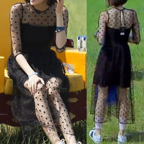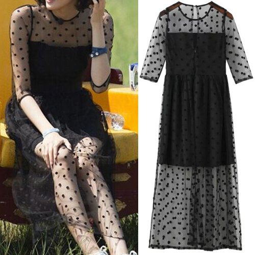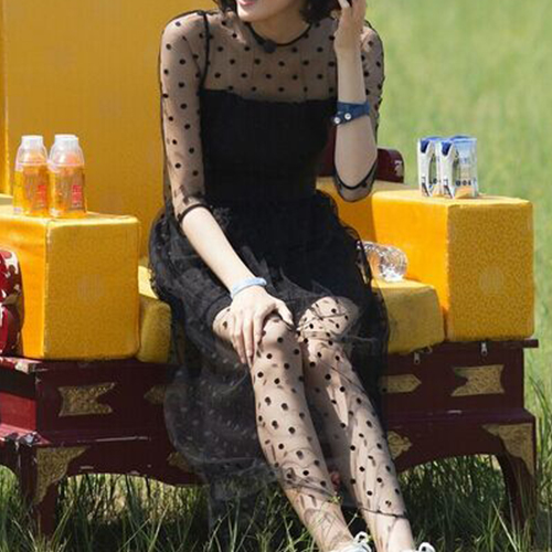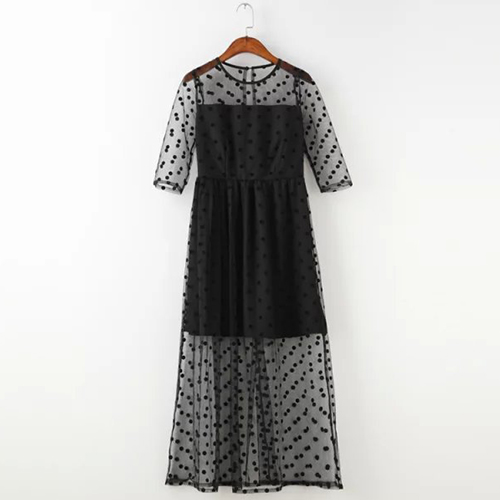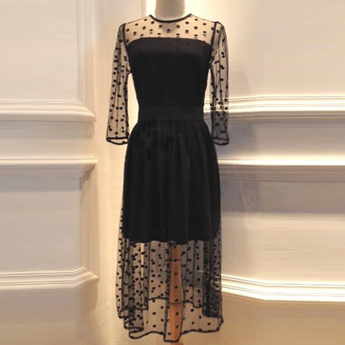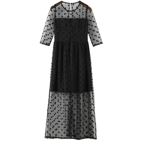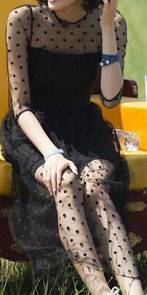Style and sophistication come together so perfectly in this dress! Gauze spliced style,with dots printed