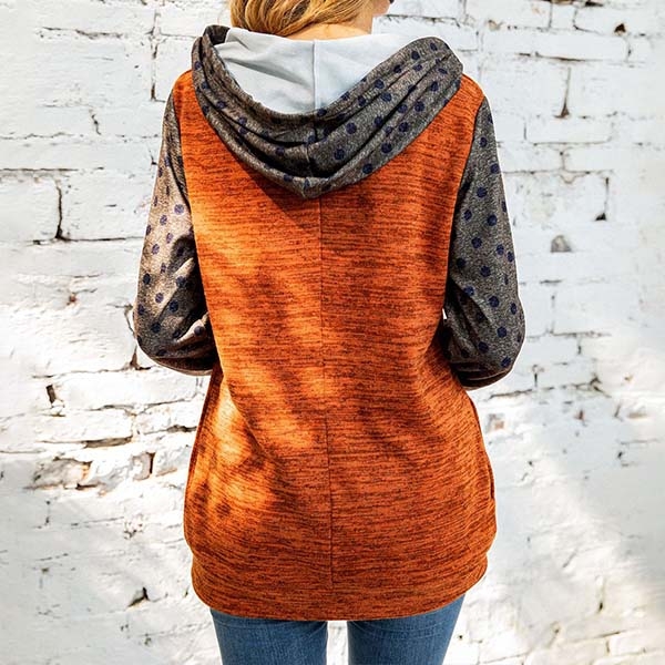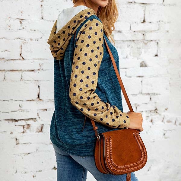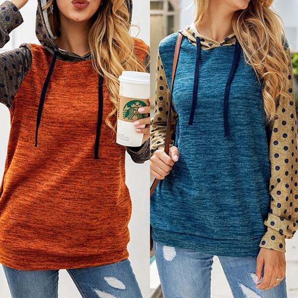 You can look lively and full of energy in this sweatshirt. The dots printed spliced details will lend