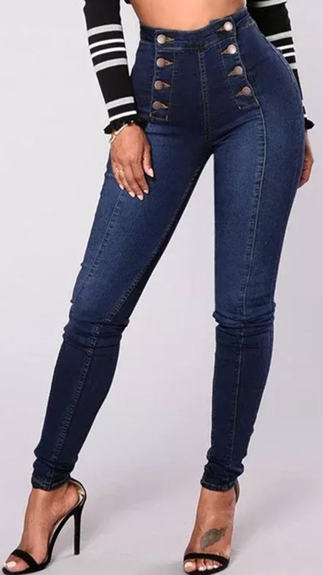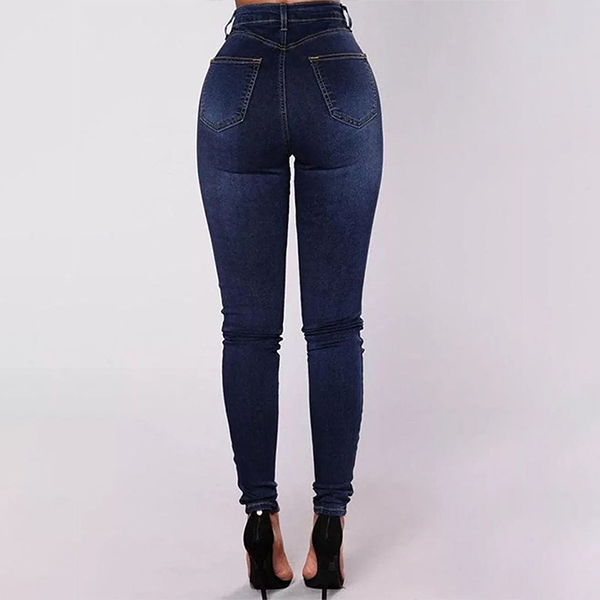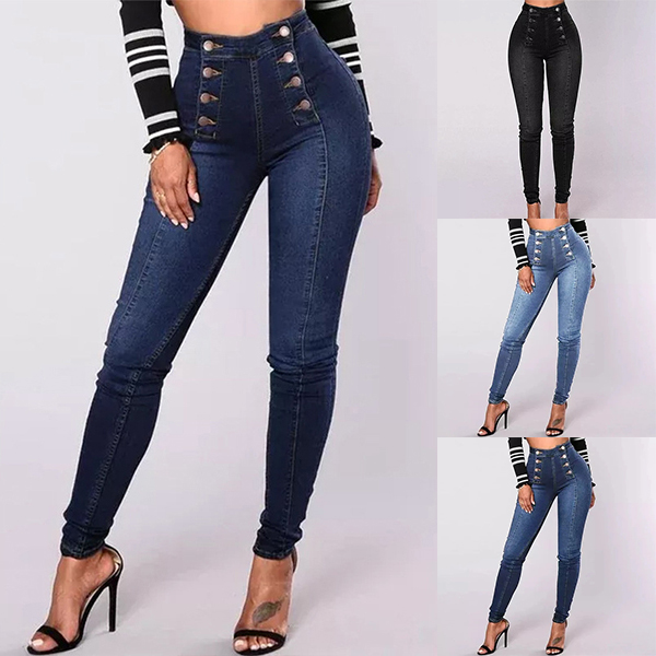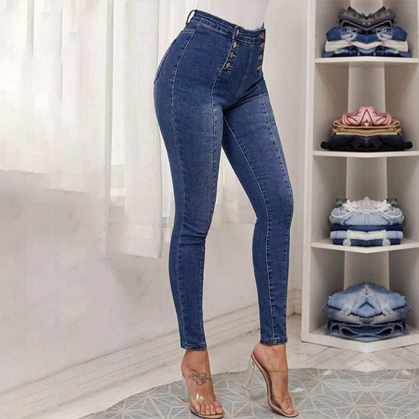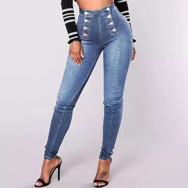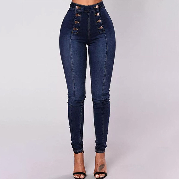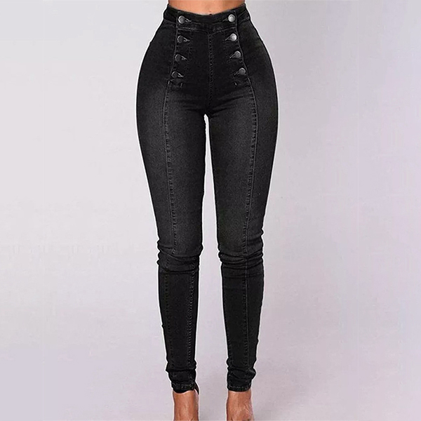 Fashion Double-breasted High-rise Elastic Denim Jeans