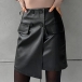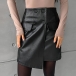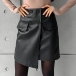 Fashion Double-breasted Irregular Hemline Artificial Leather PU Skirt