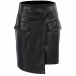 This skirt features double-breasted design, irregular hemline, and artificial leather (PU) fabric for a modern and stylish look. This skirt is perfect for those who want to make a fashion statement with a unique and trend-setting piece.