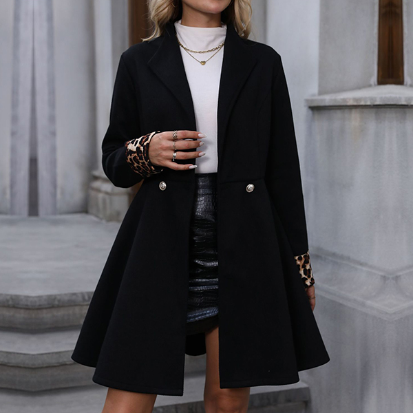 Fashion Double-breasted Lapel Long Sleeve Leopard Print Cuff Jacket