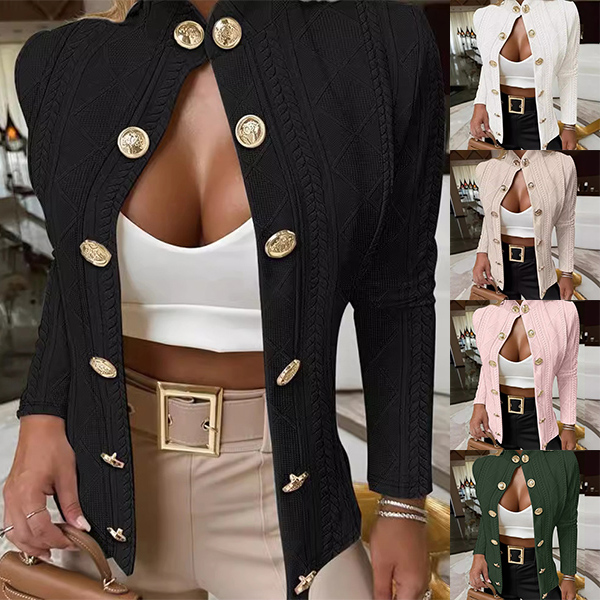 How about this cardigan? The double-breasted design adds a classic and tailored touch, while the long sleeves provide warmth and comfort. Multi-colors avabile.