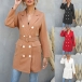 Fashion Double-breasted Notch Lapel Long Sleeve Blazer with Belt