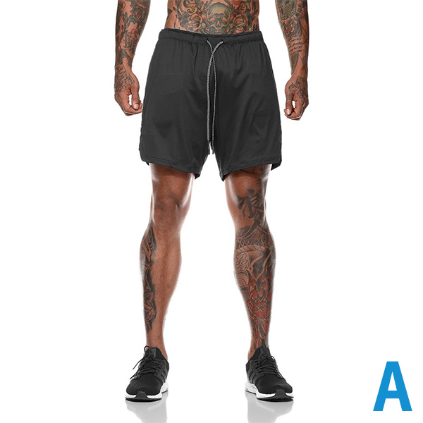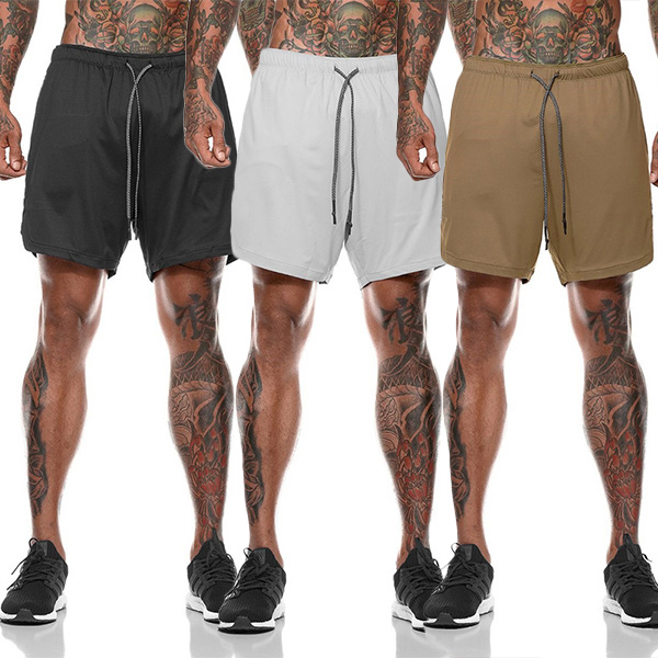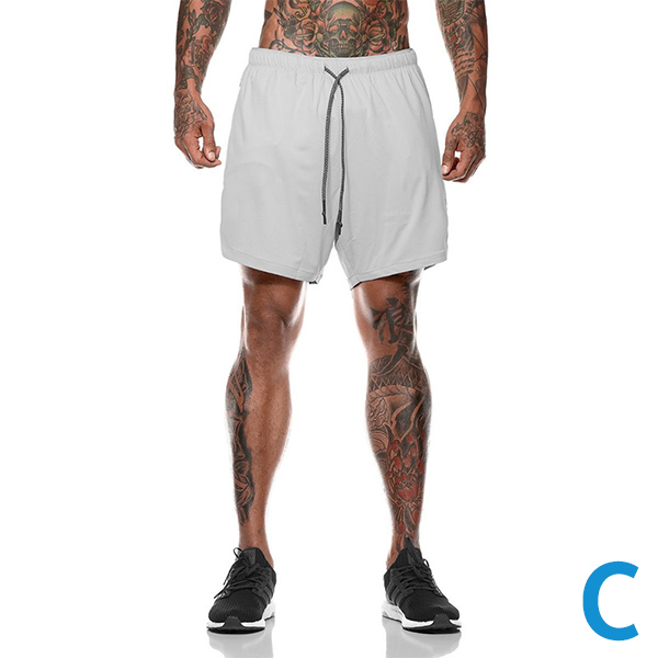 Fashion Double Layer Solid Color Men's Shorts - Fitness Sports Training Quick Dry Running Pants