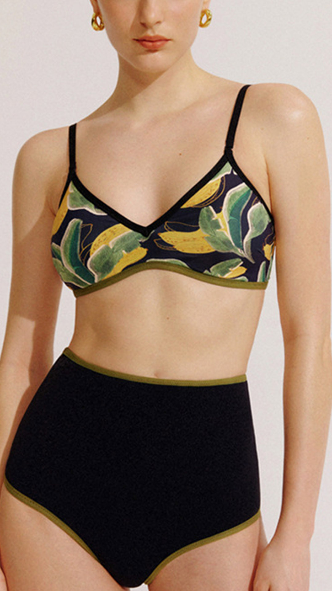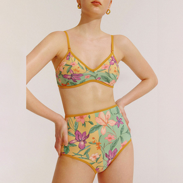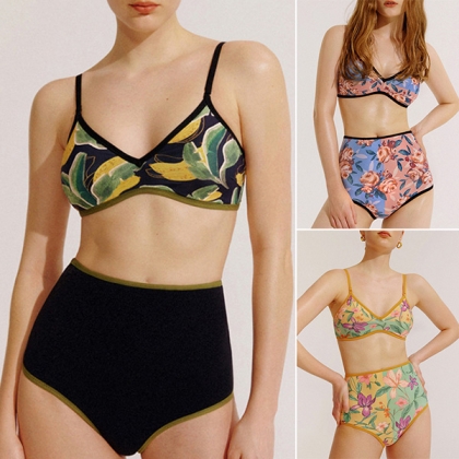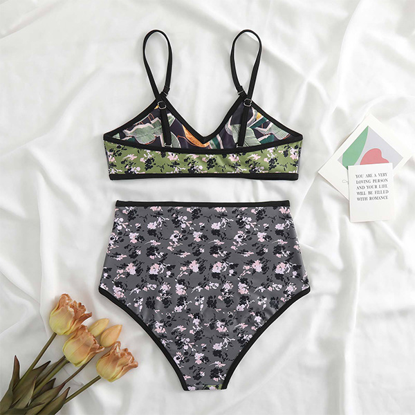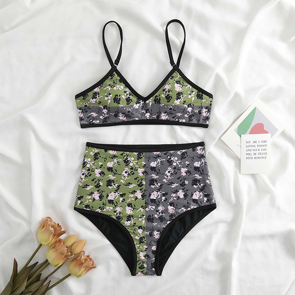 Fashion Double-Printed Bikini Set Consist of Bikini Top and High-rise Bikini Bottom