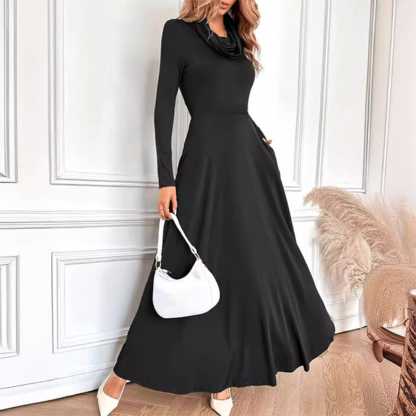 Fashion Drape Neck Long Sleeve Maxi Dress