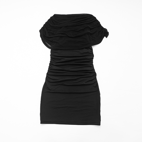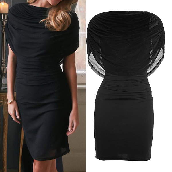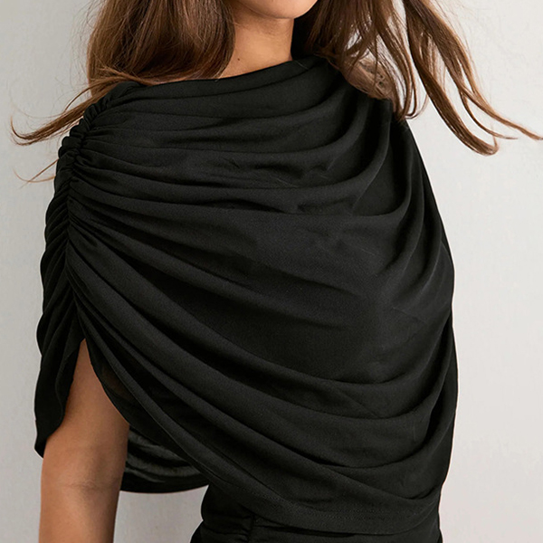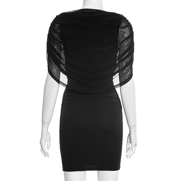 Fashion Draped Cape Crew Neck Ruched Bodycon Dress