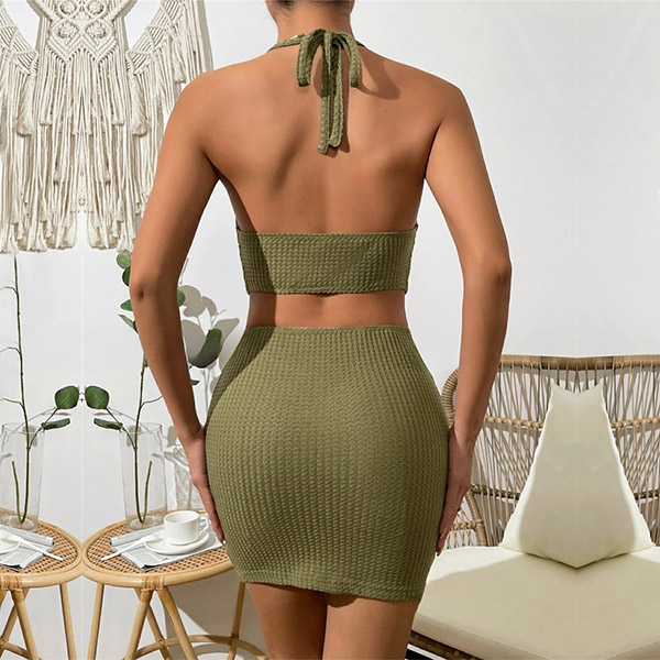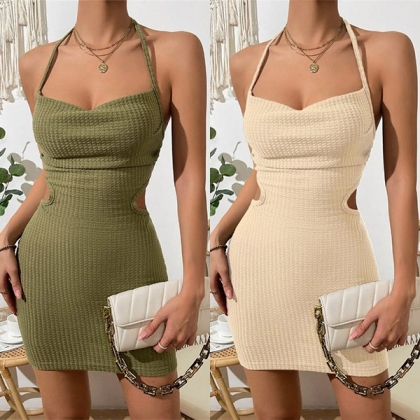 Fashion Draped Halterneck Side Cutout Backless Bodycon Dress
