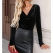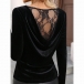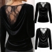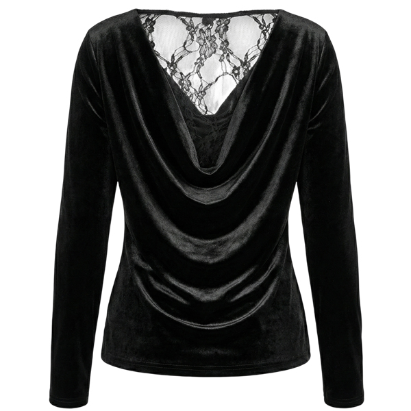 Fashion Draped Neck Long Sleeve Back Lace-spliced Velvet Shirt