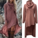 Fashion Draped Neck Long Sleeve Irregular Hemline Dress