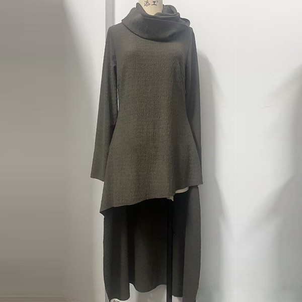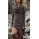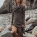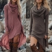 This dress features a draped neckline that adds a touch of elegance and flair to the design. And the irregular hemline adds a modern and fashion-forward touch to the dress, creating a unique and eye-catching silhouette. Pair this dress with boots for a casual and fashion look!