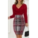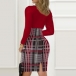 Fashion Draped Neck Long Sleeve Plaid Bodycon Dress