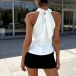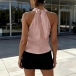 Fashion Draped Neck Sleeveless Satin Shirt