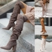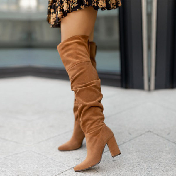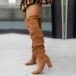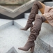 Fashion Draped Pointed-toe Block Heeled Back Slit Artificial Sudue Over-the-knee Boots
