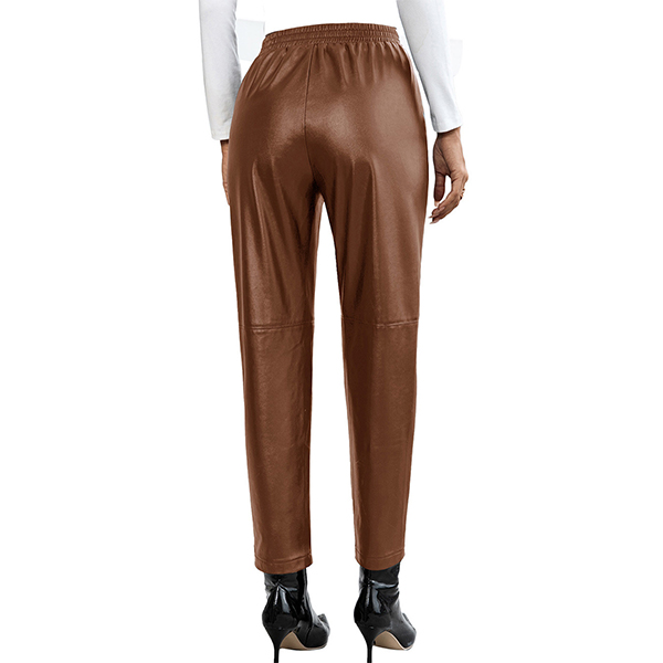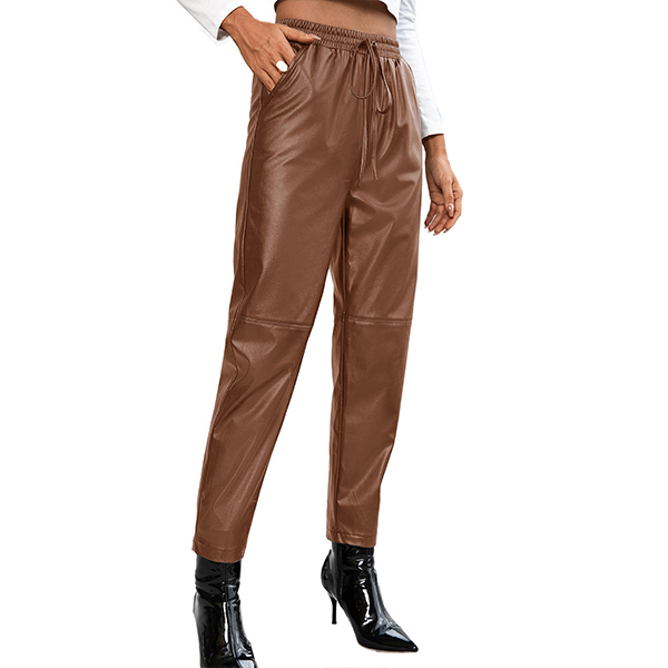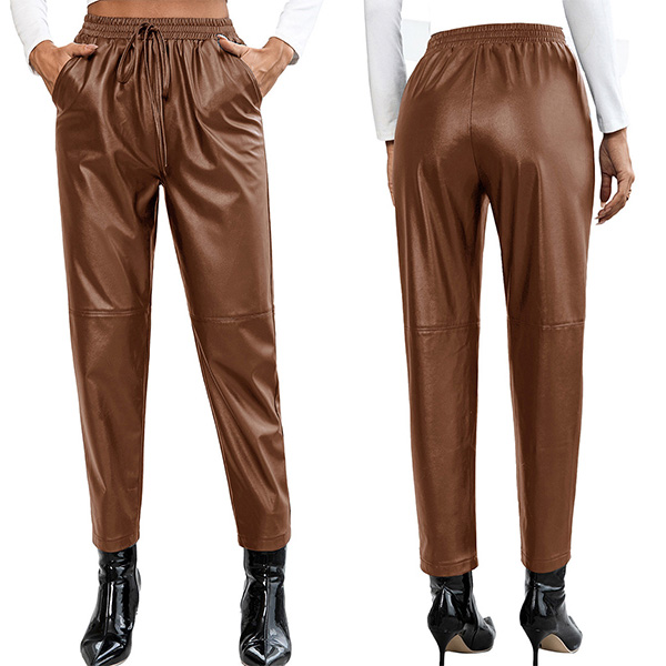 These PU pants feature a drawstring elastic waist, crafted from artificial leather for a sleek and edgy look. We could style them with a cozy sweater and sneakers for a casual yet chic look, or pair them with a blazer and boots for a more polished outfit.