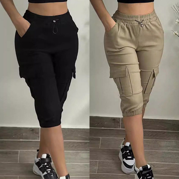 These versatile and comfortable shorts feature a drawstring elastic waist, along with convenient side patch pockets, creating a stylish and practical piece for women's wardrobes.