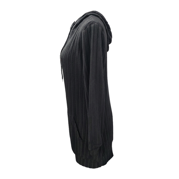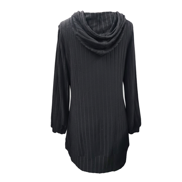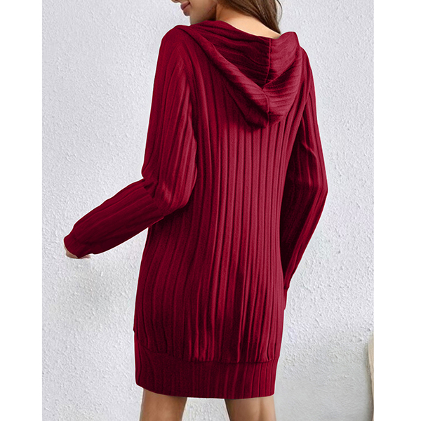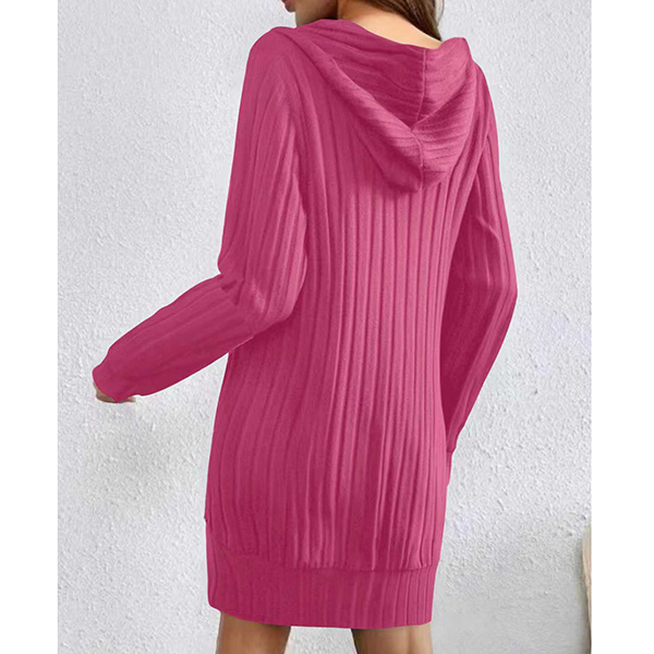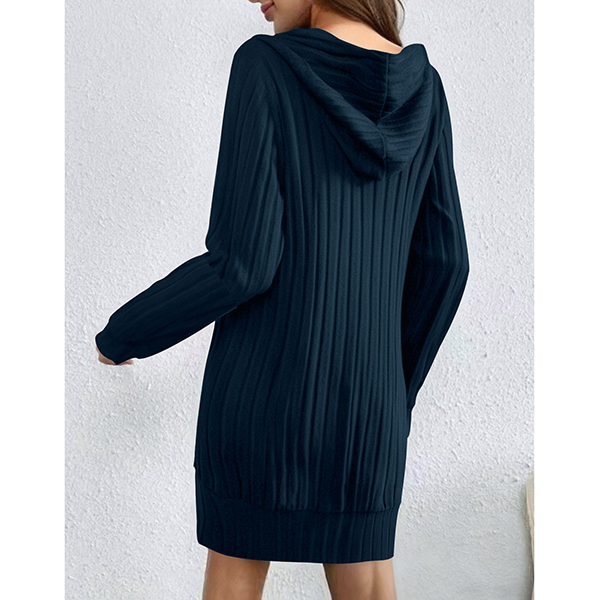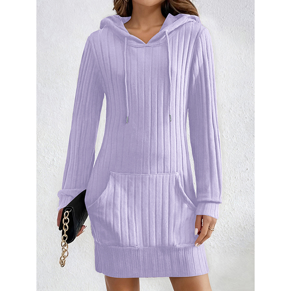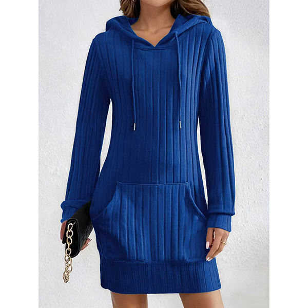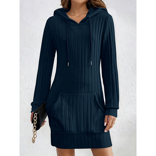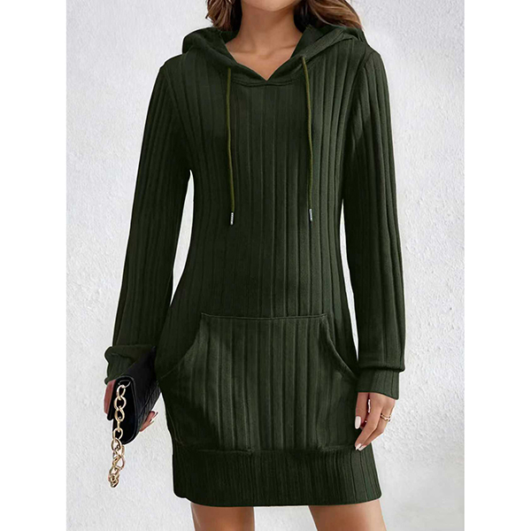 Fashion Drawstring Hooded Long Sleeve Kangaroo Pockets Ribbed Dress