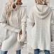 Fashion Drawstring Hooded Ribbed Long Sleeve Side Slit Longline Knitted Sweater