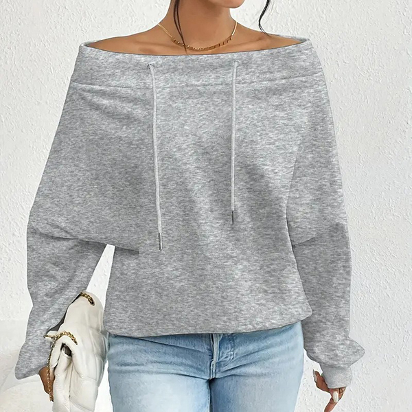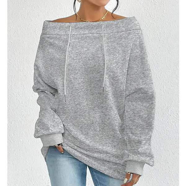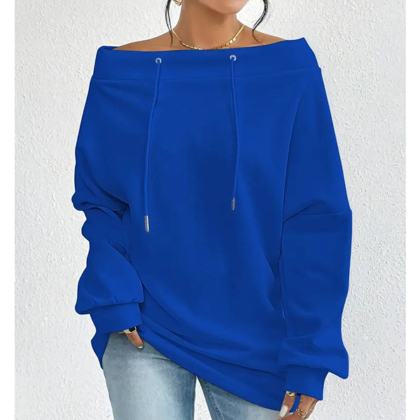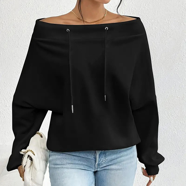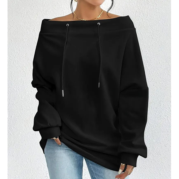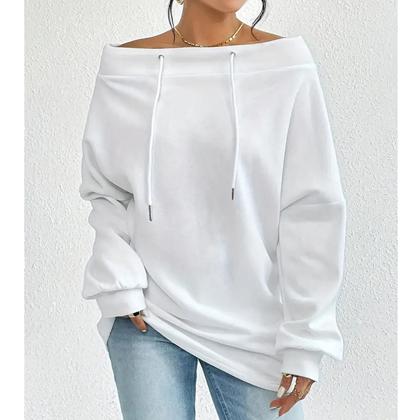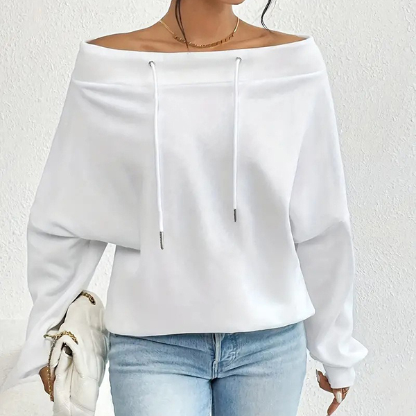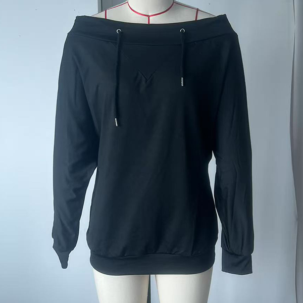 Fashion Drawstring Off-the-shoulder Long Sleeve Shirt