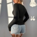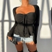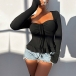 Fashion Drawstring Sweetheart Neckline Long Sleeve Ruffle Hemline Shirt