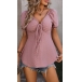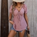 Fashion Drawstring V-neck Short Sleeve Shirt