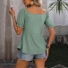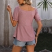 This shirt features a drawstring V-neckline, short sleeves, and solid color~Multi-colors avaible.
