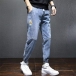 Fashion Drawstring Waist Multi-pockets Old-washed Denim Jeans for Men