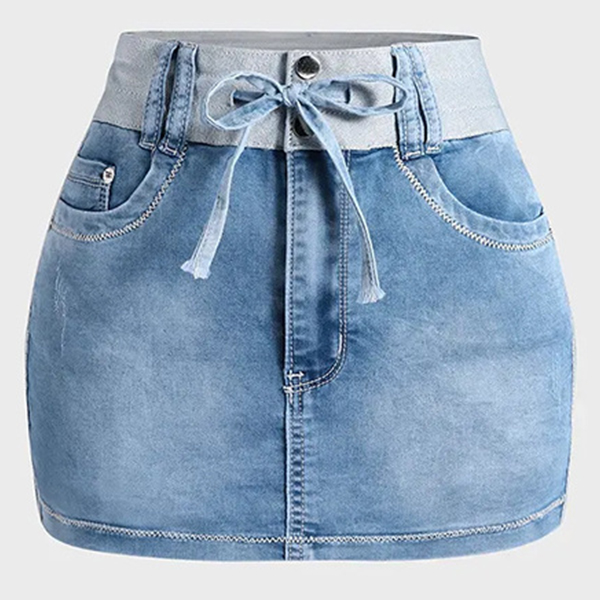 Fashion Drawstring Waist Old-washed Denim Skorts