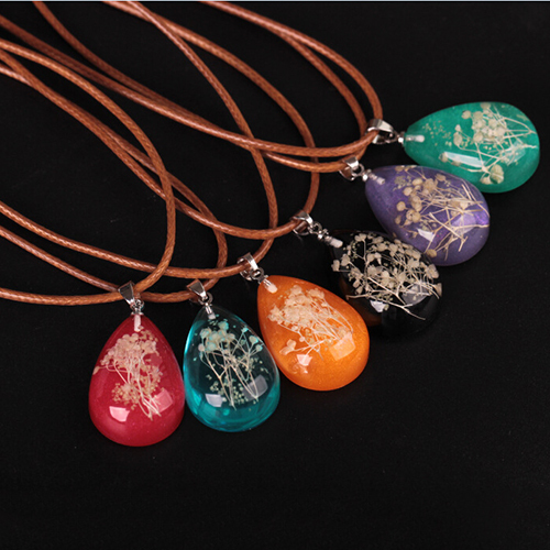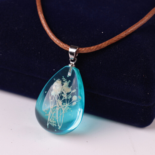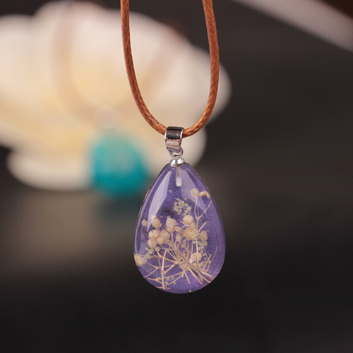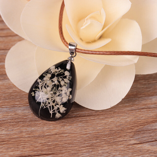Wow,such a chic and unique necklace! Designed with a water drop pendant,inside with dried plant specimen,