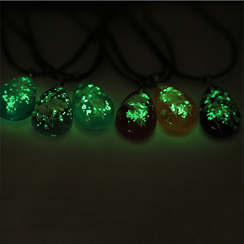 Fashion Dried Plant Specimen Luminous Water Drop Pendant Necklace