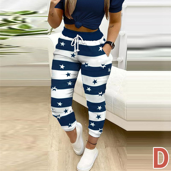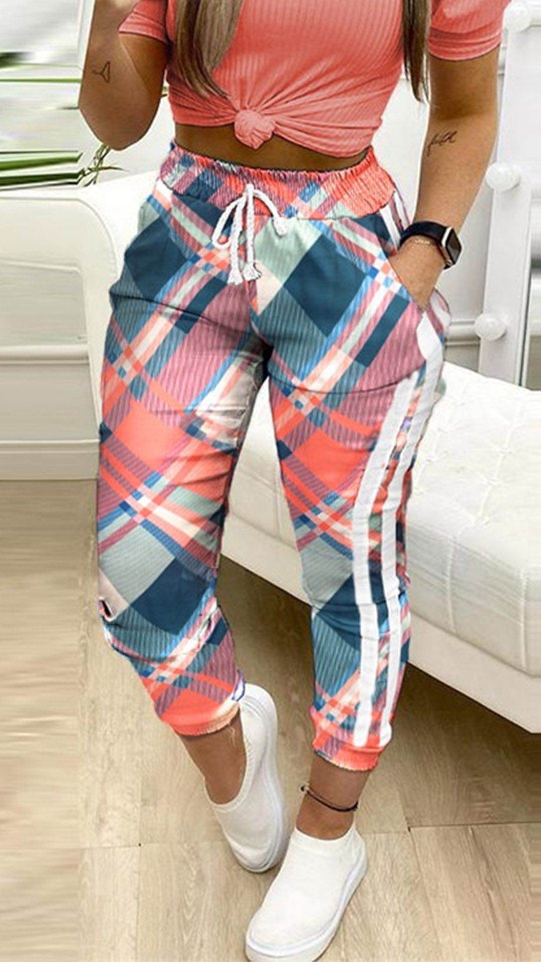 Fashion Elastic Drawstring Waist Colorful Printed Sports Pants