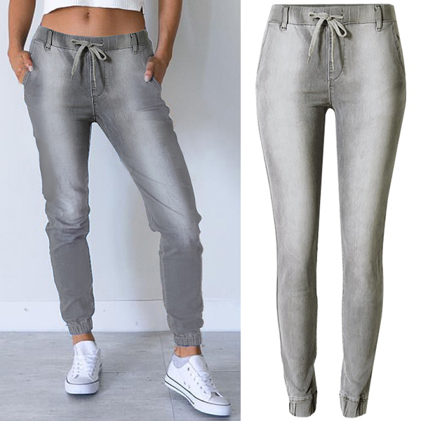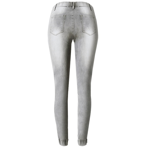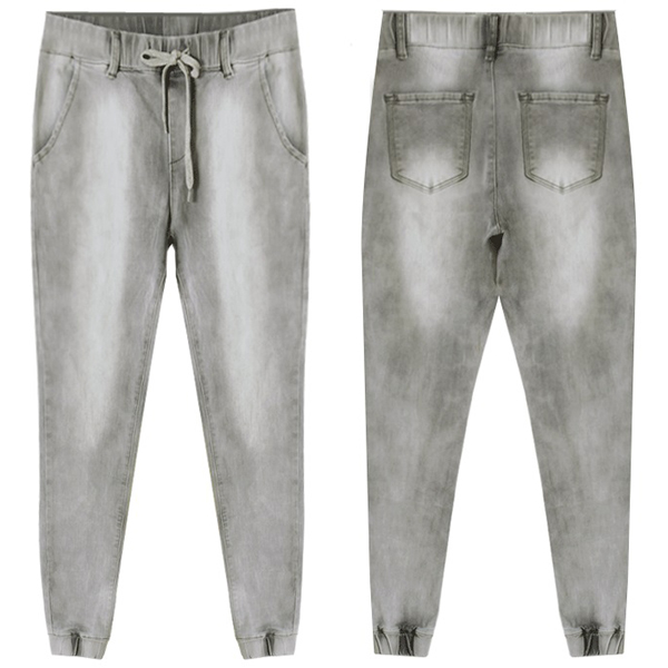 Fashion Elastic Drawstring Waist Old-washed Denim Jeans