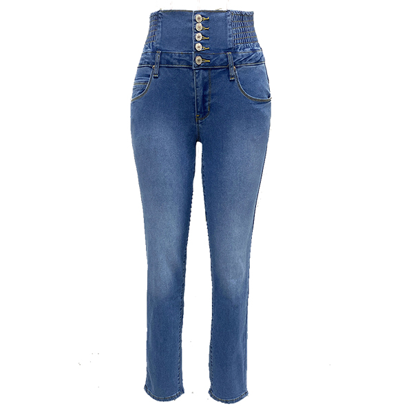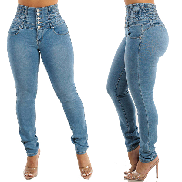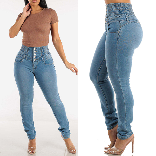 Fashion Elastic High-rise Button Fly Old-washed Skinny Jeans