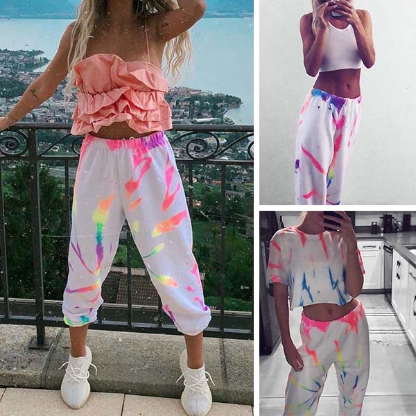 When strolling on the street with this pants,you can easily win more eyes. The colorful printed details make this piece look so eye-catching and stylish. Its elastic waist and soft fabric can give you a comfortable day. You can match with a crop top to have a sexy and charming daily look.