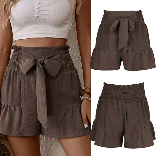 These stylish and playful shorts feature a chic front bowknot detail that adds a touch of feminine flair to the overall design. The elastic waistband provides a comfortable and customizable fit, ensuring a flattering and figure-flattering silhouette. For a casual daytime look, pair the shorts with a simple tank top or t-shirt!
