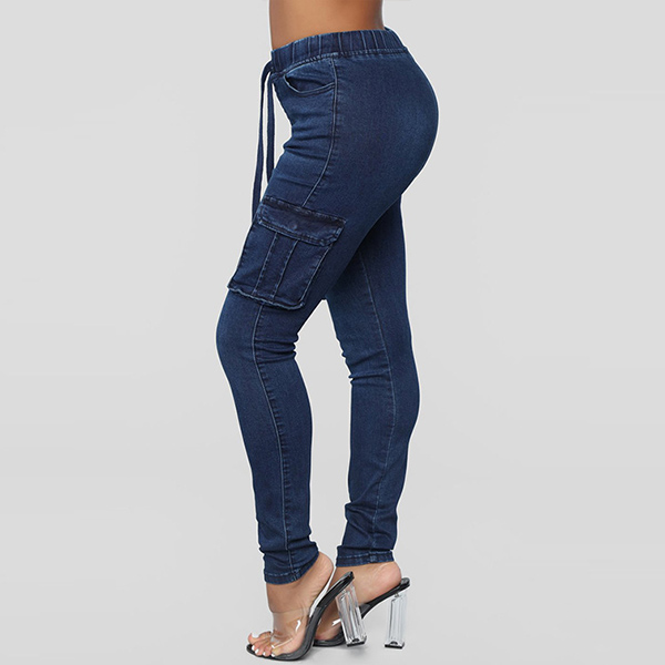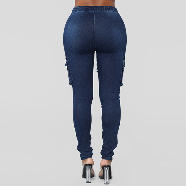 Fashion Elastic Waist Side-pocket Slim Fit Jeans
