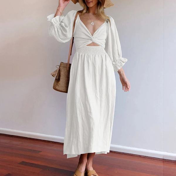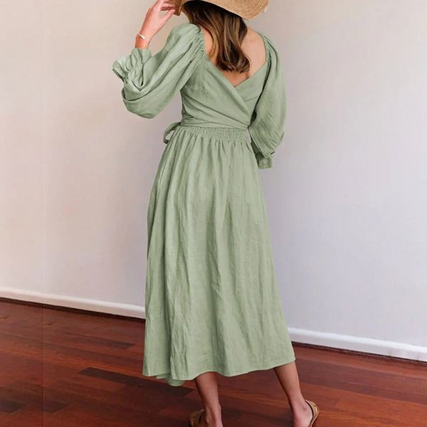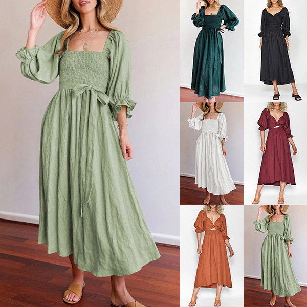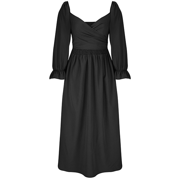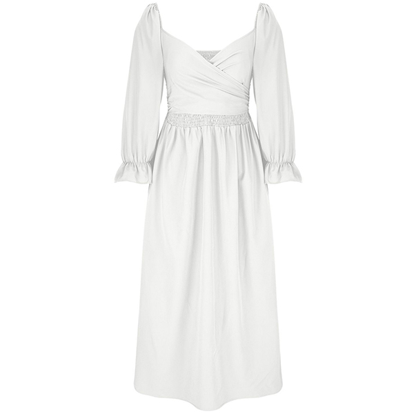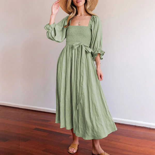 This midi dress offers two versatile wear options, making it a versatile addition to your wardrobe. It could be a square neck dress, also could be a V-neck dress~Crafted with high-quality fabric, this dress offers both comfort and style. The elbow-length sleeves provide just the right amount of coverage, making it suitable for both warmer and cooler seasons.The smocked bodice adds a flattering and figure-enhancing feature to the dress. Wanna have one?
