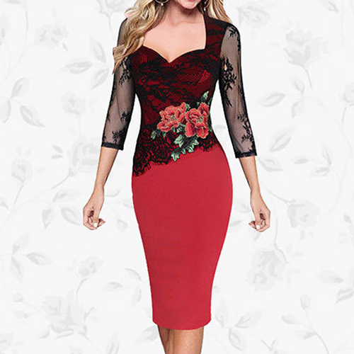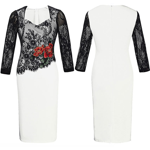 dress. It is decorated with lace flower embroidery patterns, with 3/4 sleeve design, which can perfectly