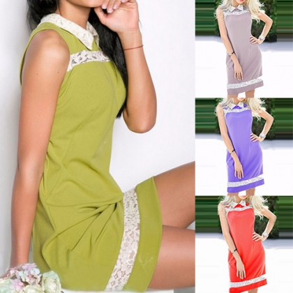 This dress is styled with sleeveless design and lace spliced patterns, elegant and stylish. With doll collar patterns, it can
