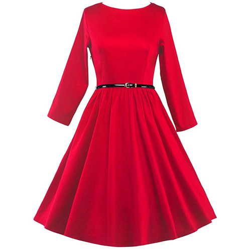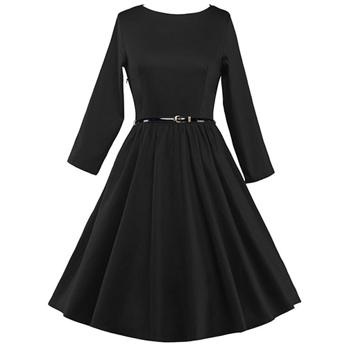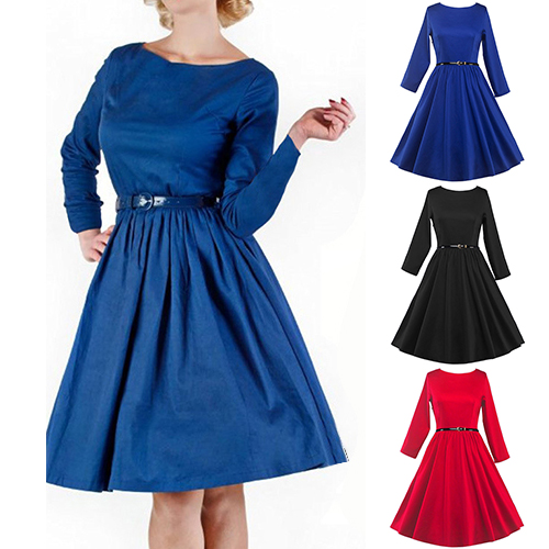 crowd when you slip on it. The dress is decorated with solid color and long sleeve patterns, with