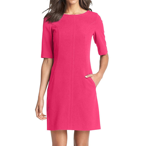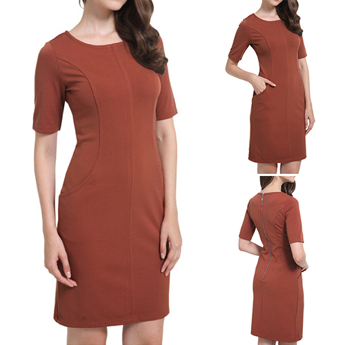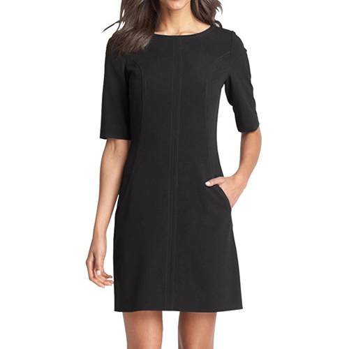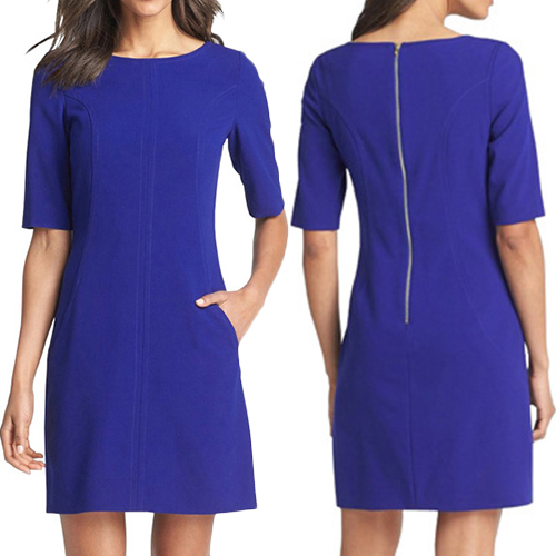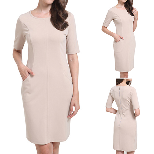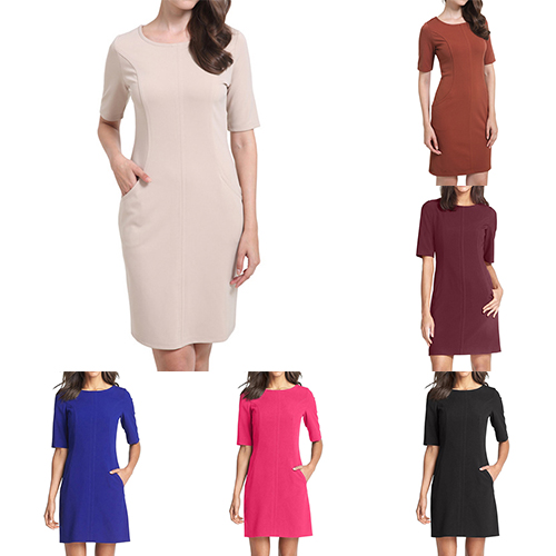 I think you will feel effortless and timeless in this short half sleeve dress. It is styled with solid color and