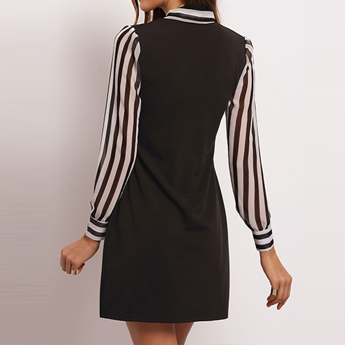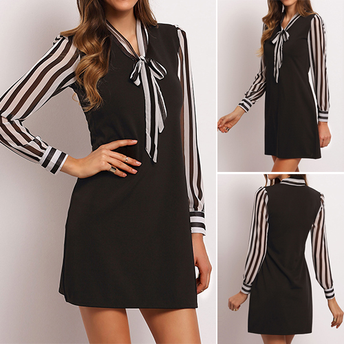 sexy office lady. The dress is completed with stripe spliced patterns, classic and stylish. The bowknot