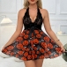 Fashion Elk Printed/Lip Printed Lace Spliced Two-piece Nightwear Set