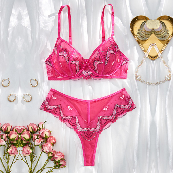 Fashion Embroidered Semi-through Two-piece Lingerie Set