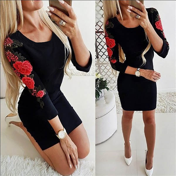 Looking for a dress which can take you to different occasions? Then look no further than this piece. The flattering back tone and fit silhouette design better highlight your figure,while the embroidered details at the sleeve part make it look more delicate and attractive. Introduce it to your wardrobe and it won't let you disappointed!
