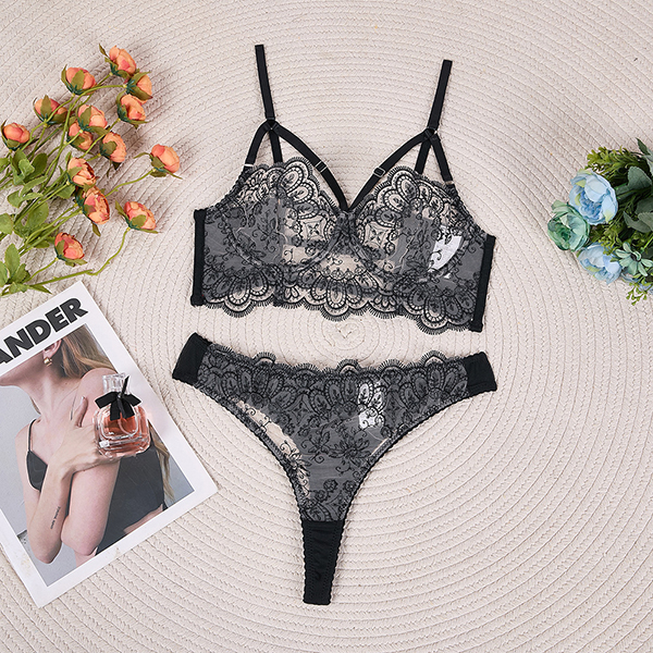 Fashion Eyelash Lace Two-piece Lingerie Set