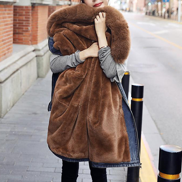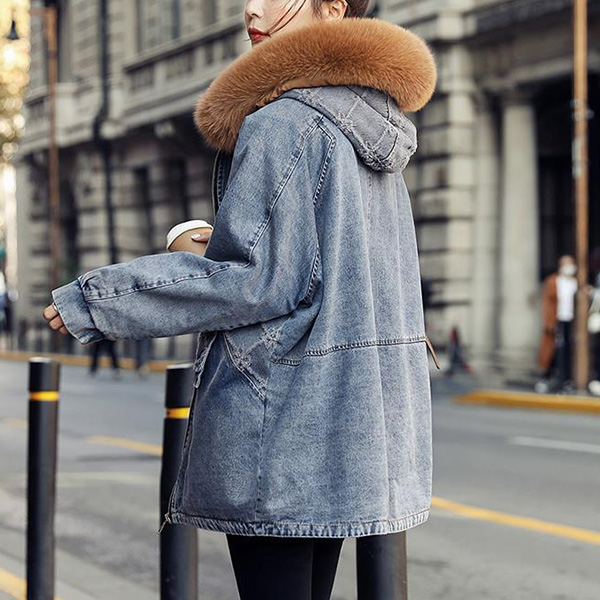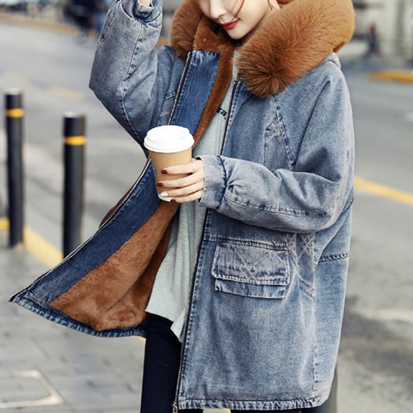 Greet the cold winter days with this warm denim coat. The faux fur collar design will make this piece look more stylish and attractive,while the ripped details can add some extra charm. You can just match with your tight pants and over-the-knee boots to finish a sassy winter look.