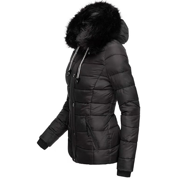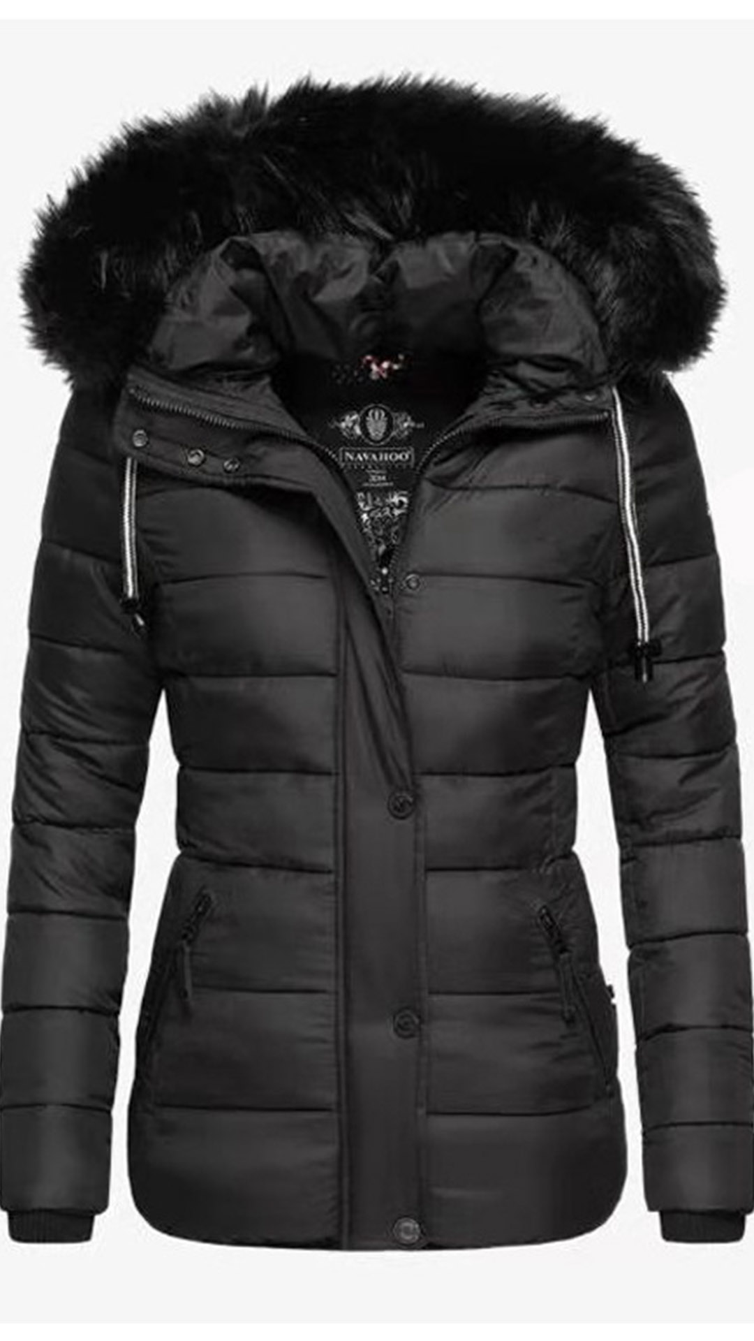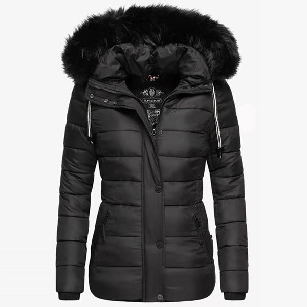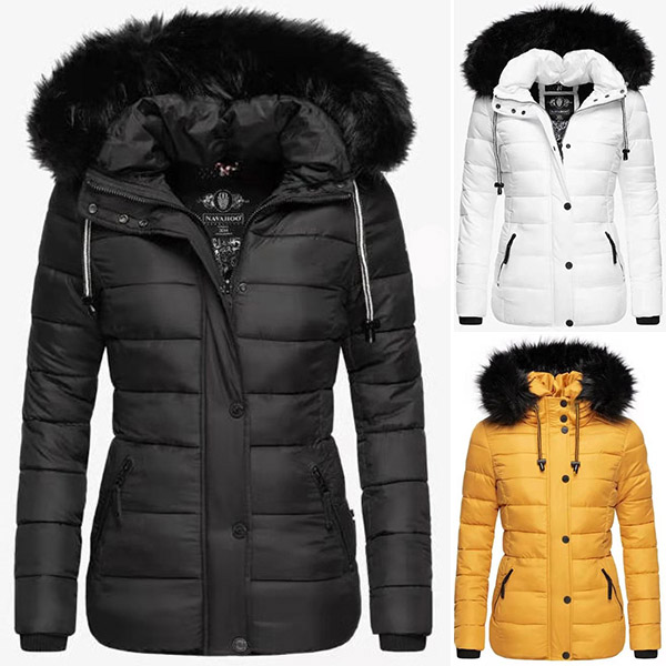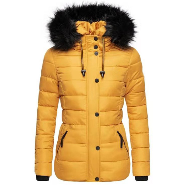 Greet your cold winter days with this warm padded coat. The faux fur spliced hooded design not only enriches the design style,but also boosts its entire charm. The zipper-pocket design can keep your hand warm and your belongings safety. Just add one to your winter wardrobe!