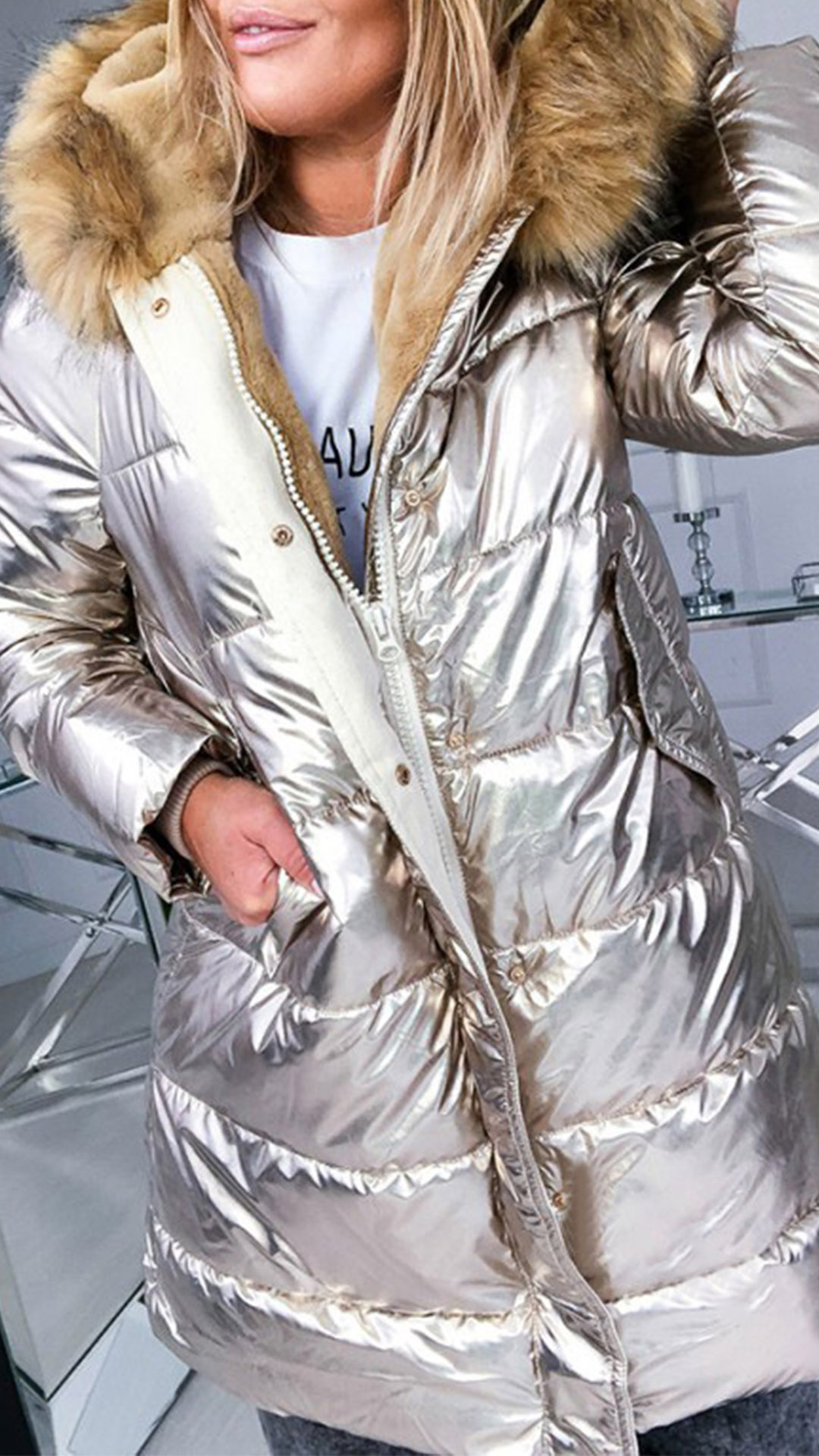 You have no need to worry about the chilly winter days if you have this padded coat in your wardrobe. Solid color style,the smooth fabric design makes it easy to wash,while the faux fur spliced hooded design will keep you feeling comfy and warmth. Just enjoy your winter days with this warm coat!